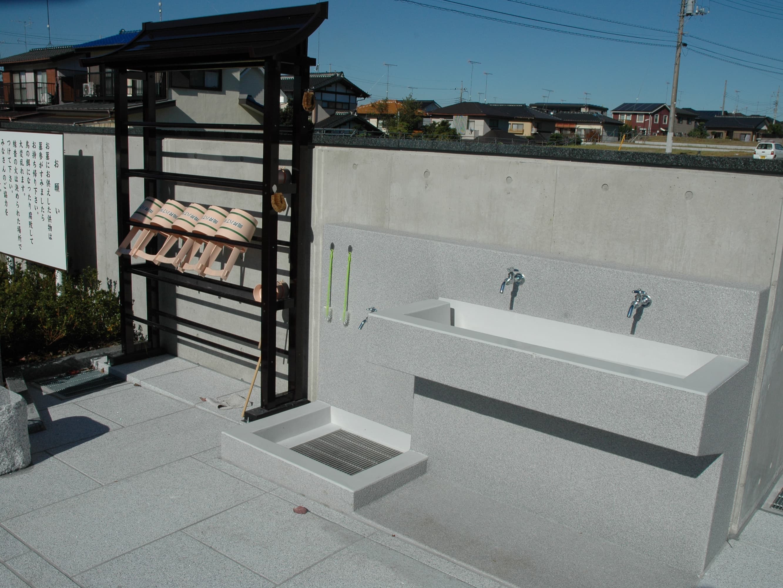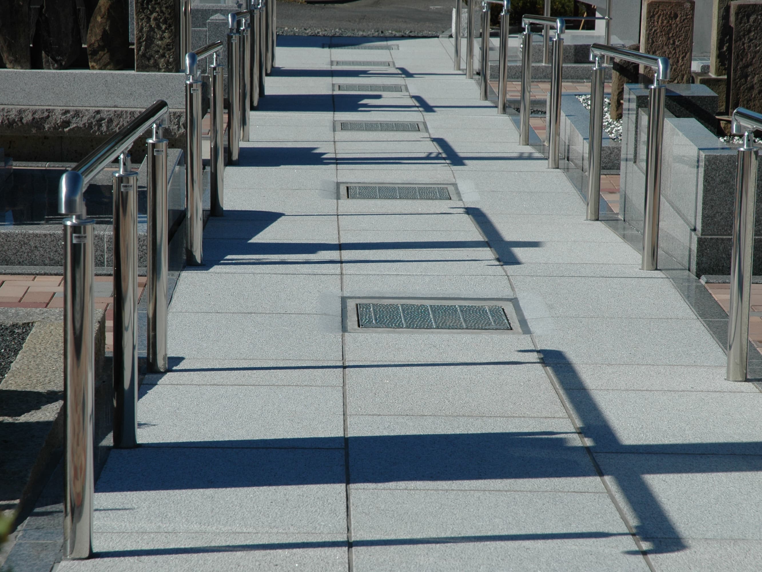 墓地移転に伴い、今の墓地の現状を把握するため、幾つかの民間霊園の見学会を行ったり、いまの墓地の形状、これから世代が変わったときにも安心して使えるような設計、今後年を重ねた時に、墓地の使用勝手にも配慮。そのため、できるだけ墓地をフラットに、そしてそれぞれのお墓が分け隔てないような配置。一番の特徴は、旧墓所からでた沢山のご遺骨の安住の場所として、永代供養墓の建立です。共同墓地でありながら家の断絶も考慮して建立しました(岡芹八丁共同墓地利用者のみ利用可能)。また水場の設置、お線香着火のための場所設置。共同墓地としては十分すぎるぐらいの設備となりました。
