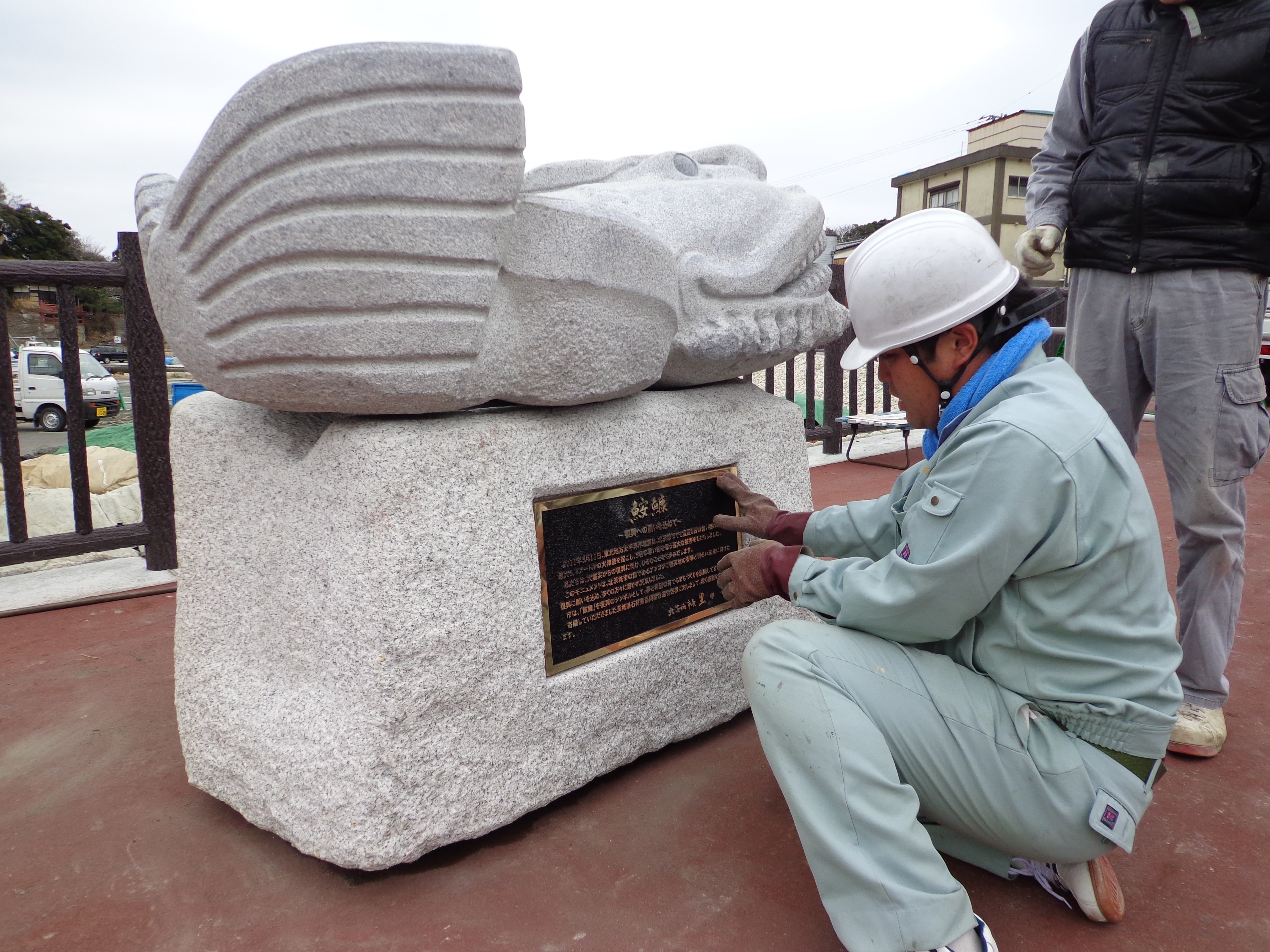 このモニュメントは、北茨城市の魚であるアンコウに被災地の安寧と明るい未来に向けた復興に願いを込め、多くの方々に磨かれ完成しました。