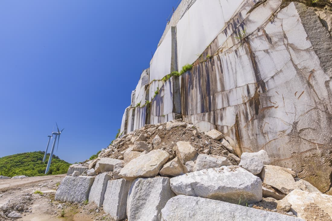 羽黒石と総称しているが、石の質は産出される山によって多少違っている。加波山系の山で通称橋本山、上城山より産出されているのは花崗岩でも「糠目」と「小目」のもので良質であるが、いずれも玉石より採るために歩留りがよくない。従って価格も糠目石での単位単価は他の丁場と比べると比較的高価である。「中目」「大目」は東部地区より産出されるもので、これは稲田御影と同質の 石であり大材も採ることができる。現在これらの石を採服している地区は糠目・小目のとれる橋本山、上城山は国定公園内であり、表土や採掘後の環境保全が厳しく規制されており、今後新しく 採掘されることはないであろう。一方、大目・中目も採掘されている地区は、県立公園にかかりこれも規制をうけている。このようにして、この地区における採石は昔ほど自由にできなくなっているため、石材業者は採掘より加工業への転換を余儀なくされている。