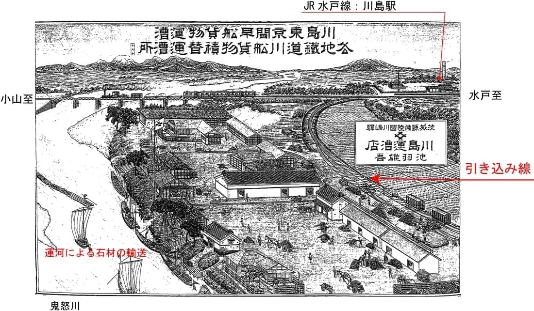 鉄道のない時代、山から切り出した石を運ぶのは並大低ではなかった。車や牛、 馬、人々はし梯子で石を背負ったといわれている。やがて水戸線が開通、このよう仕事をはじめ数々の事業に活躍した藤原与太郎は大広、茅場方面の山を開発した草分けの人だったのである。採石はできるが輸送に苦心していたところへ明治33年中野喜三郎の後を追ってきた土屋大次郎が、水田丈九郎と共同事業で採石したいといわれ、与太郎はこの事務所を譲り渡し、石材界から身をひいたといわれている。