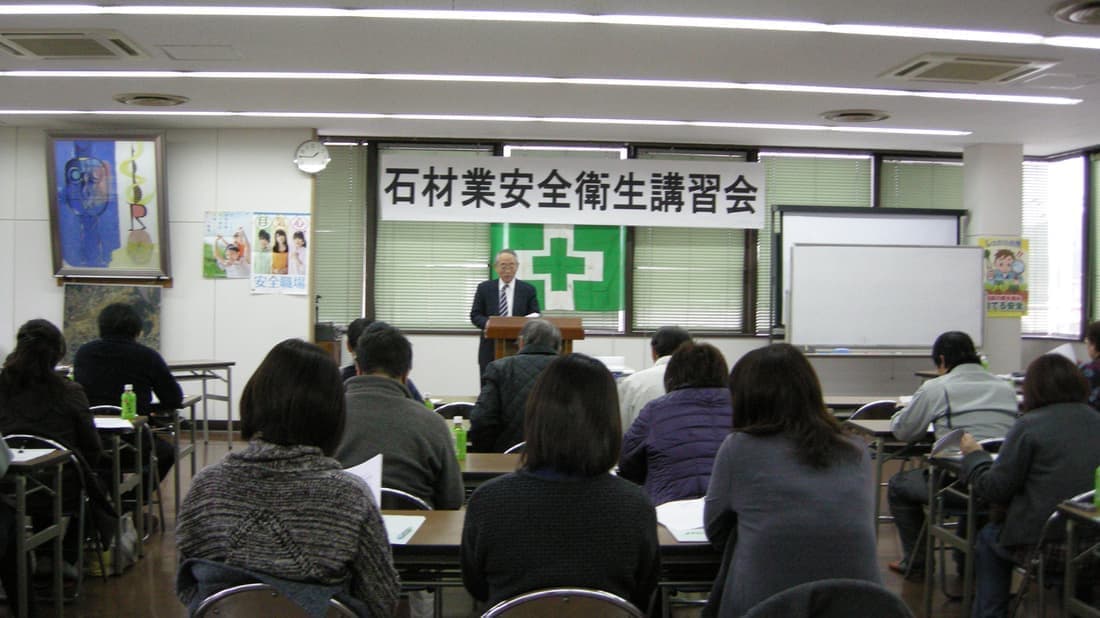 その他、関係諸官庁及び関係諸団体の行事等には積極的に参加し、情報を収集して組合員に周知します。地場産業振興のための有意義な研修、講習会を行います。火薬類危害予防週間、全国労働安全・衛生週間、年末年始無災害運動、採石災害防止月間等の行事にはその主旨の周知を図ります。採石業務管理者の講習会、火薬類取扱保安教育講習会、経営者等会議や各種研修会への参加により経営及び技術の改善向上を図ります
